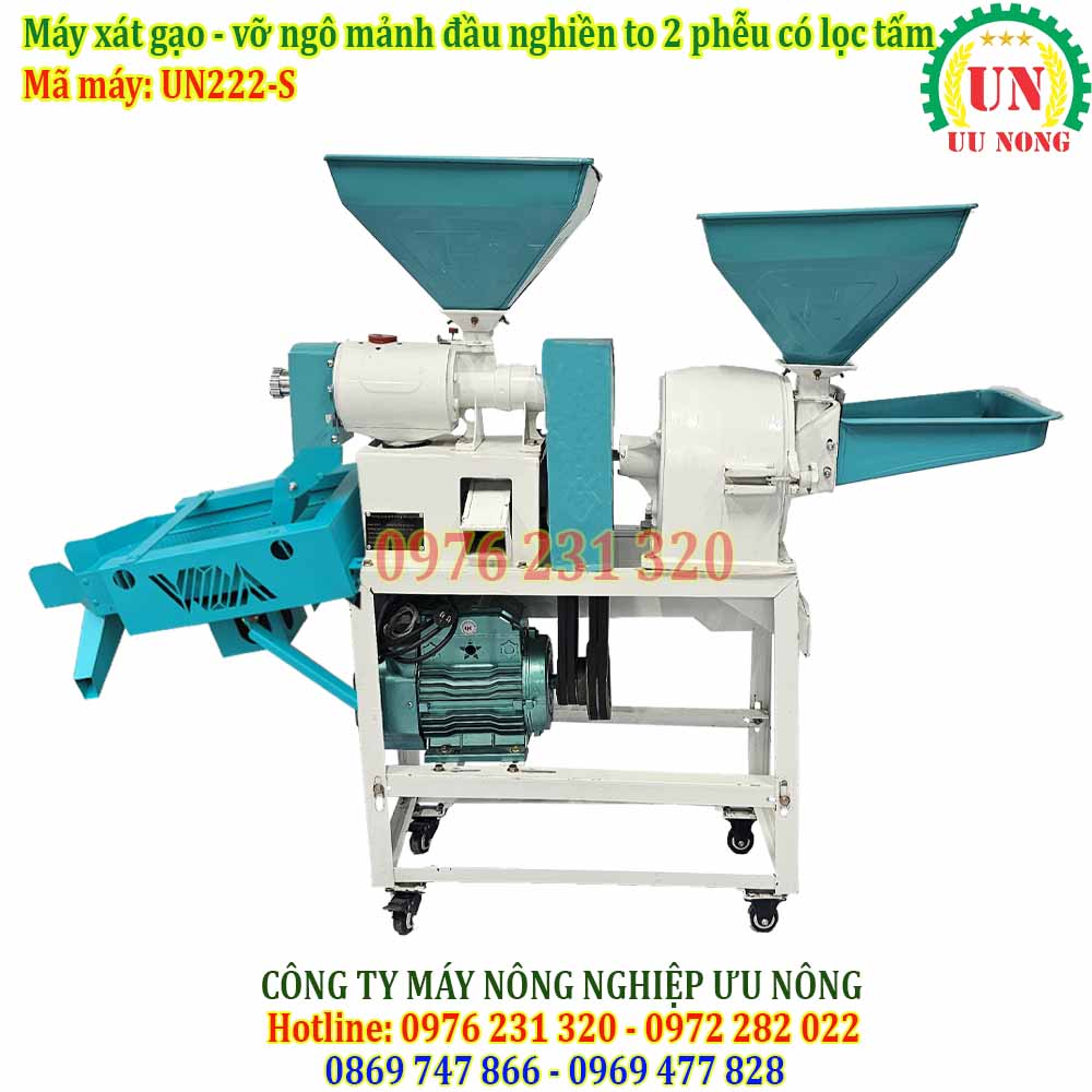 Máy Xát Gạo Bốn Chức Năng – Buồng nghiền lớn 2 tầng dao có lọc rác lọc gạo tấm UN 222-SP